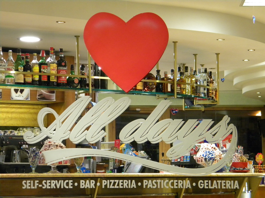 Da oltre 23 anni, aperto 7 giorni su 7 dalle 5 del mattino alle 21:30 di sera, l'All Days è un Ristorante Self Service, Bar, Tabaccheria, Ricevitoria... e molto altro. Un locale dalle mille sfaccettature in un ambiente confortevole ed accogliente!